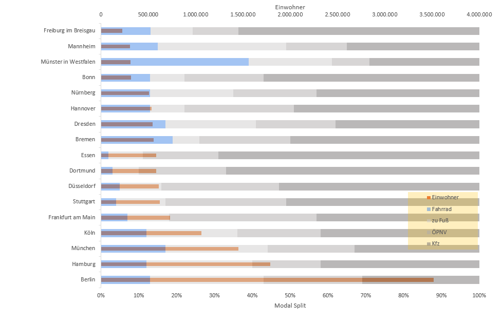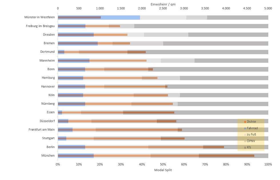 - Modal Split und Einwohnerdichte in deutschen Großstädten